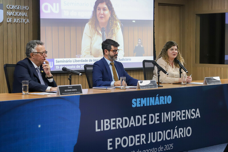 A Abraji participou do evento representada por sua presidente, Katia Brembatti, e por Letícia Kleim, coordenadora jurídica da organização. Katia Brembatti falou sobre o enfrentamento do assédio aos jornalistas, apontando as conquistas recentes e os desafios impostos ao jornalismo, em uma mesa composta por Manoel Corrêa, juiz auxiliar da Presidência do CNJ, e Octávio Costa, Presidente da ABI (Associação Brasileira de Imprensa).